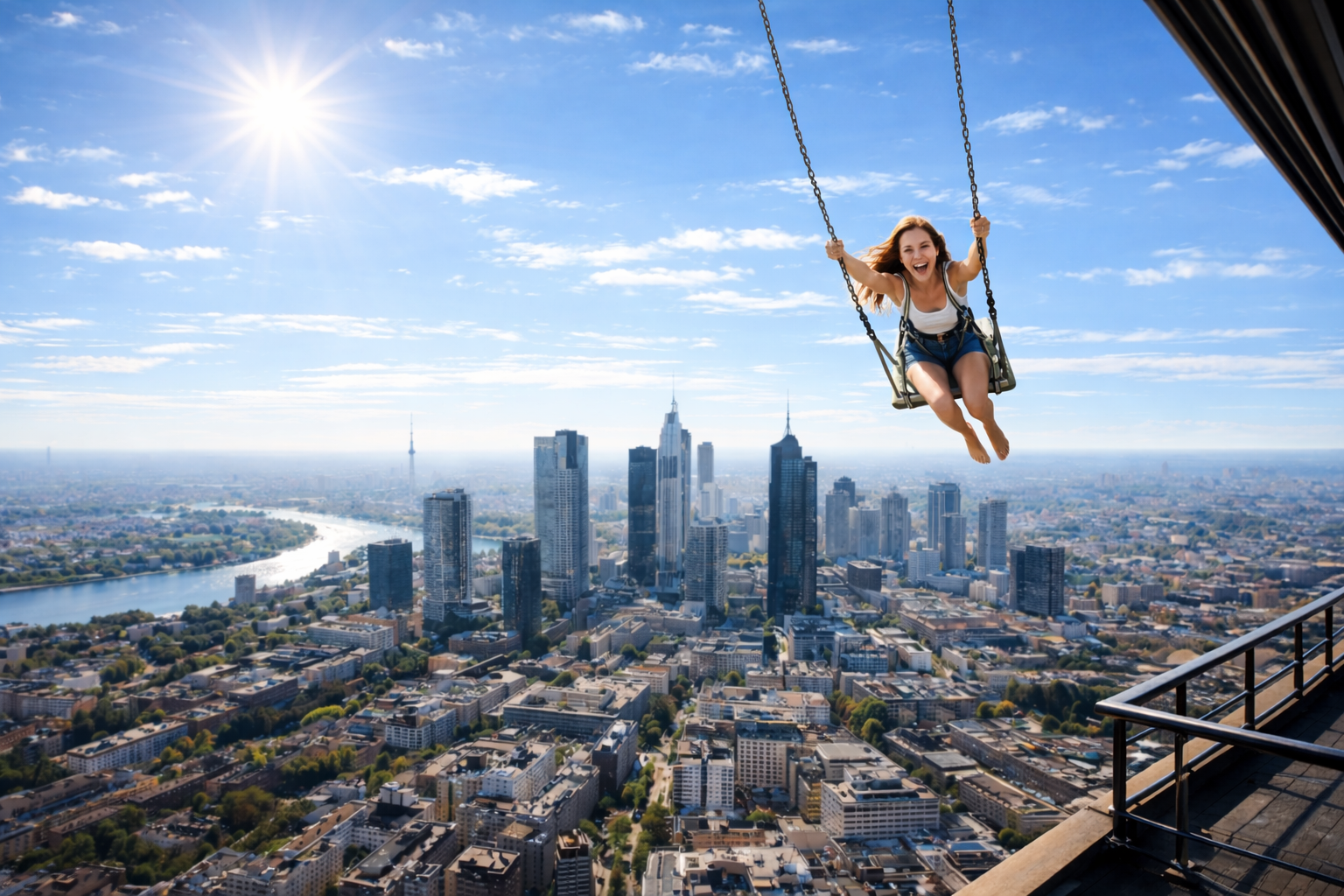 Dann kennst du Skyline Swing noch nicht. Der Skyline Swing ist eine Schaukelanlage, bei der Menschen gesichert über die Kante eines Daches oder einer Plattform hinaus schaukeln. Für Betreiber und Eigentümer entsteht daraus eine außergewöhnliche Attraktion mit echtem Mehrwert, für Gäste ein Moment zwischen Aussicht, Nervenkitzel und Freiheit.